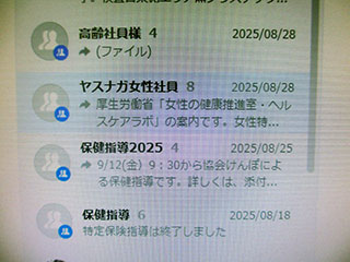 社員に健康に関する情報を周知するために、2024年10月から「健康経営ファイル」を使って全社員に回覧しています。回覧する内容は、「睡眠」「熱中症」「マイナ保険証」など、社員が受講した研修会の内容や協会けんぽからのお知らせなど多種多様に及びます。回覧後は自身の押印欄に押印してもらうことで、回覧漏れがないようにしています。